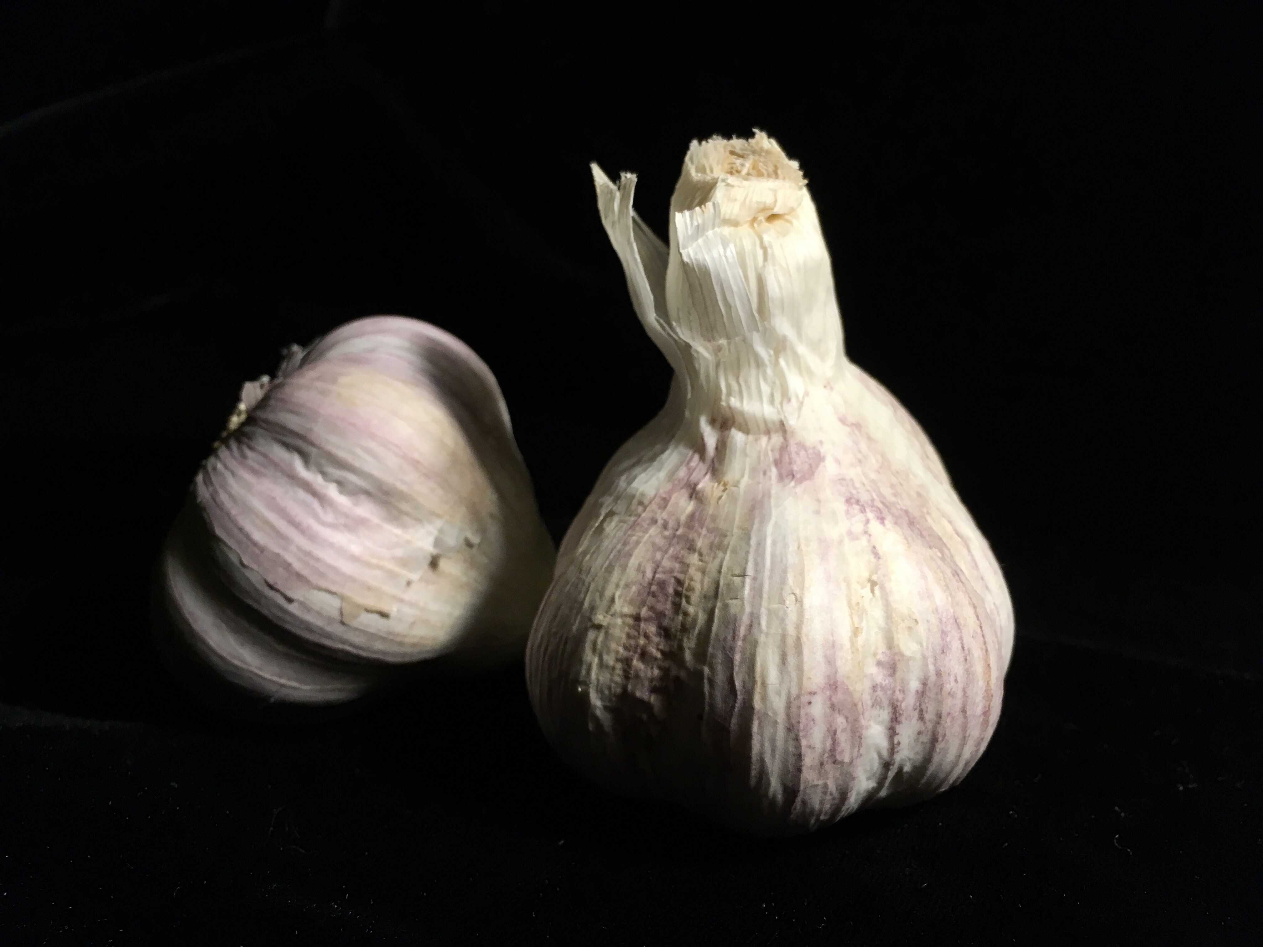 My reference photo for my garlic painting. The beautiful hues of purple and the papery texture attracted me. I like the drama of drop-out black.